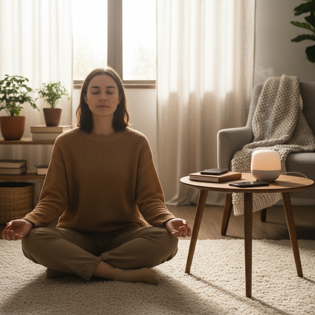 - Przeprowadź medytację: Skup się na oddechu i wizualizacji przez minimum 10 minut.