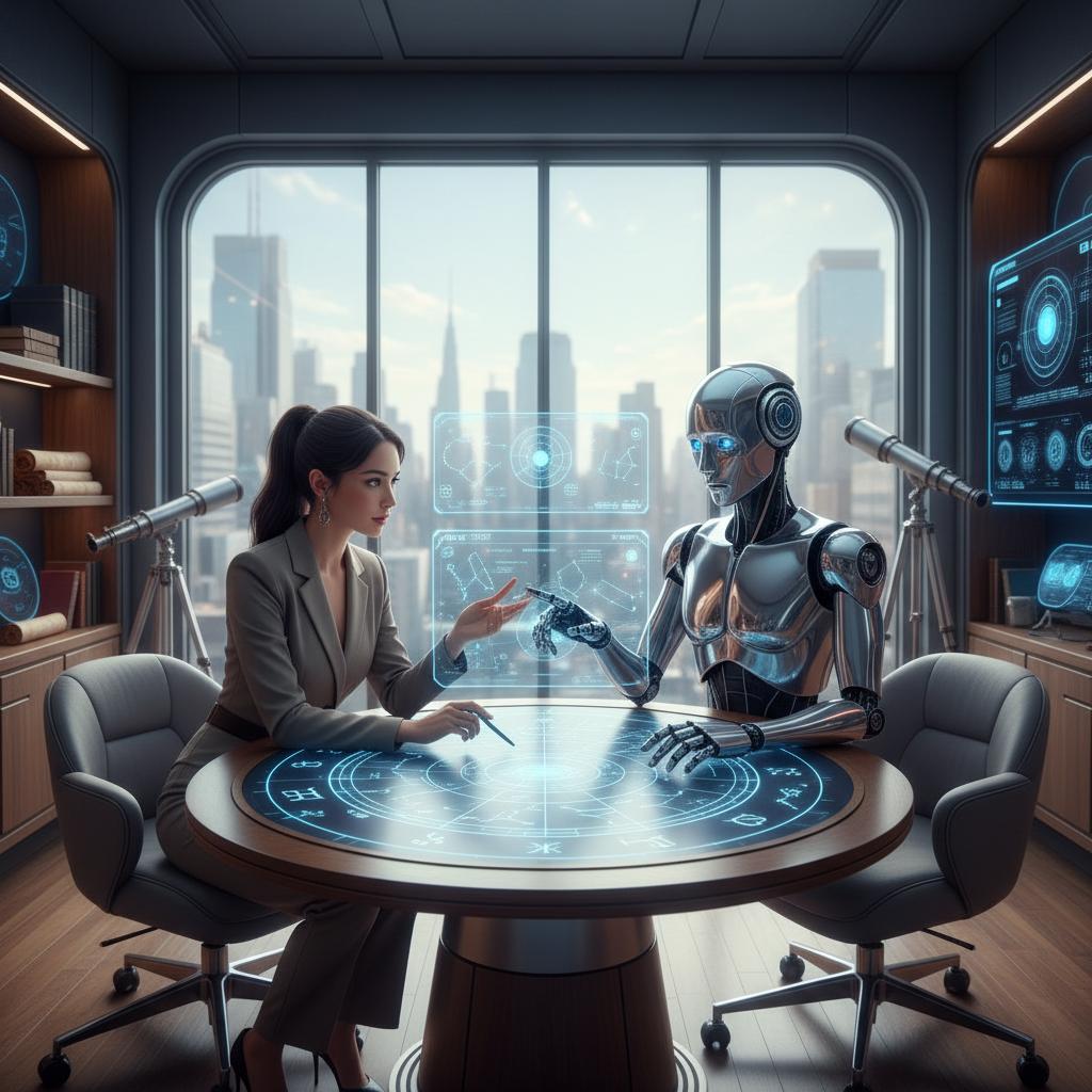 Ekspert lub narzędzie AI świadczące usługi astrologiczne zdalnie, analizujące kosmogram, oferujące prognozy i wskazówki przez platformy internetowe. W praktyce coraz częściej spotykasz hybrydę – człowieka wspieranego algorytmami.