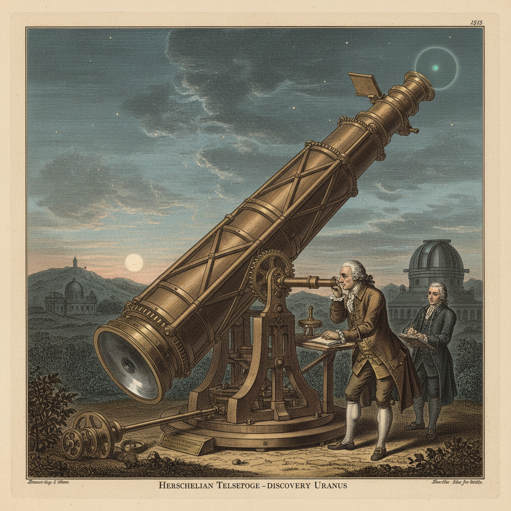 Obraz: Historyczne narzędzia astronomiczne podczas obserwacji Urana – symbol przekraczania granic nauki i astrologii.
